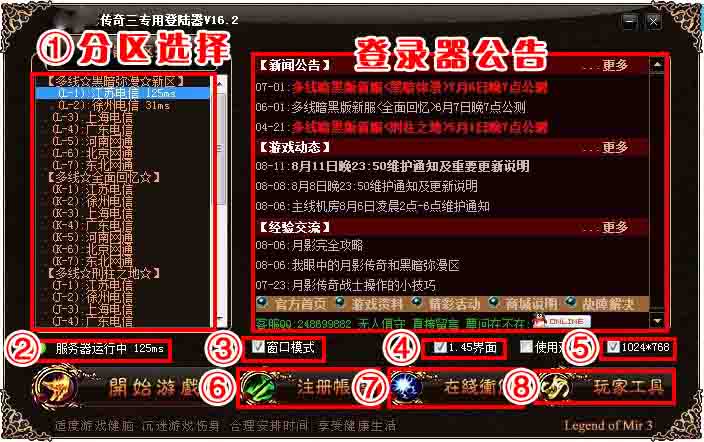 可以再玩家工具处修改密码,恢复角色,卡号处理,关闭3D加速(必须)。